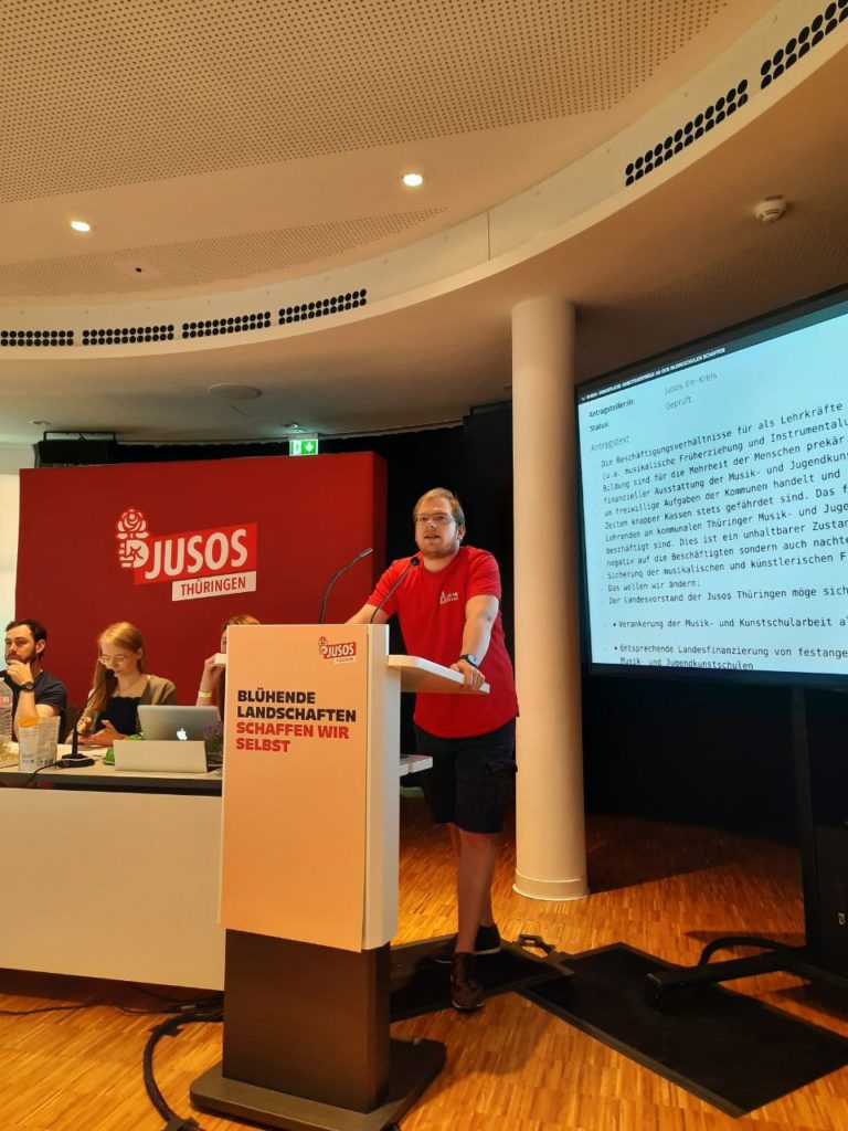 Die Jusos Ilm-Kreis brachten Anträge u.a. zu den Themenbereichen Beschäftigungsverhältnisse an den Musikschulen, Entlastung von Lehrpersonal an den Schulen, zur Regelstudienzeit und zur Digitalisierung ein.